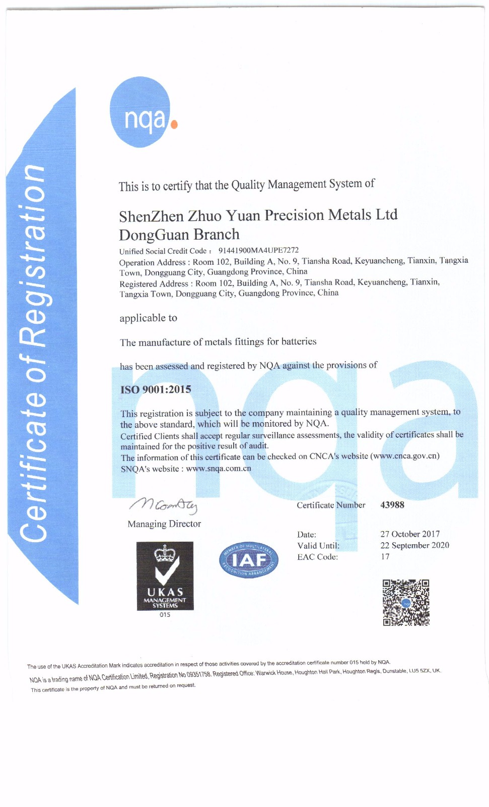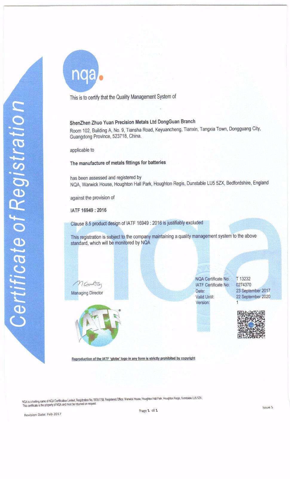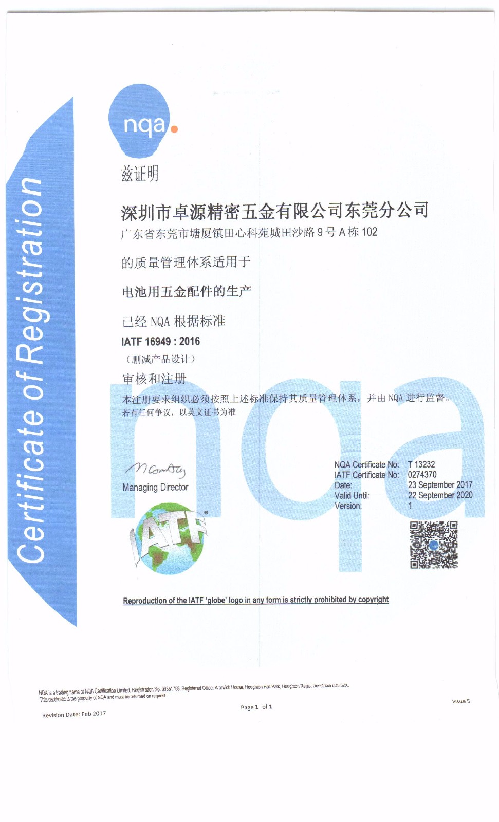 ISO 9001:2015/ IATF 16949:2016 質(zhì)量管理體系證書(shū)